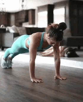 身體呈一條直線,雙手撐地與肩同寬,雙腳併攏。慢慢彎曲手臂使胸部貼地,然後推回原位。這個動作能鍛鍊上肢和胸部的肌肉,提高代謝率。