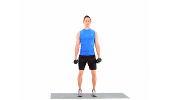 啞鈴前平舉,就是兩手握啞鈴伸直臂,往前由下而上反覆做平舉動作,也可鍛鍊三角肌的前束。