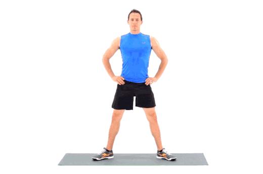 動作標準:我們先邁出一步,前腳腳尖指向正前方,後腳腳尖稍微內扣,重心落在前腳腳尖與後腳腳跟之間。然後,我們身體微微前傾,保持腰背挺直,同時收緊核心肌羣。