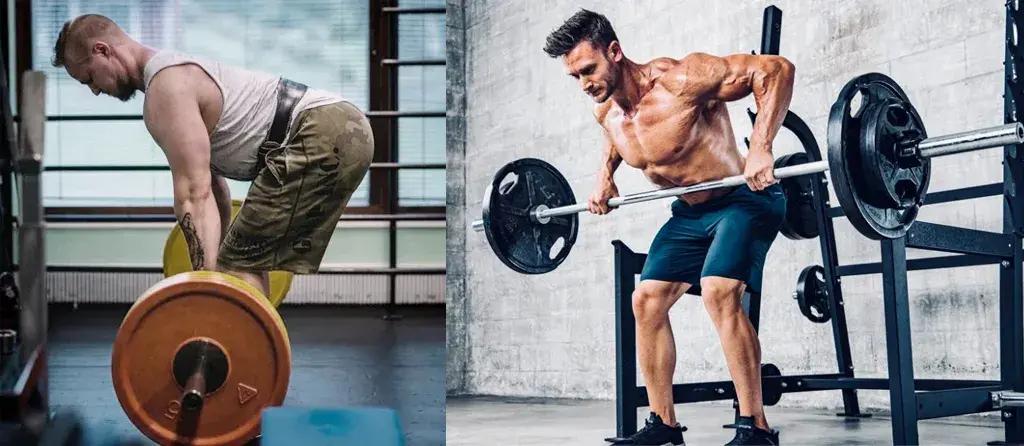 ●拿起槓鈴,先做一個緩慢的直腿硬拉,以固定好你的下肢後鏈。在划船的全程,下肢和腰椎都是穩定角色,只有胸椎和手臂可以大幅度位移。
