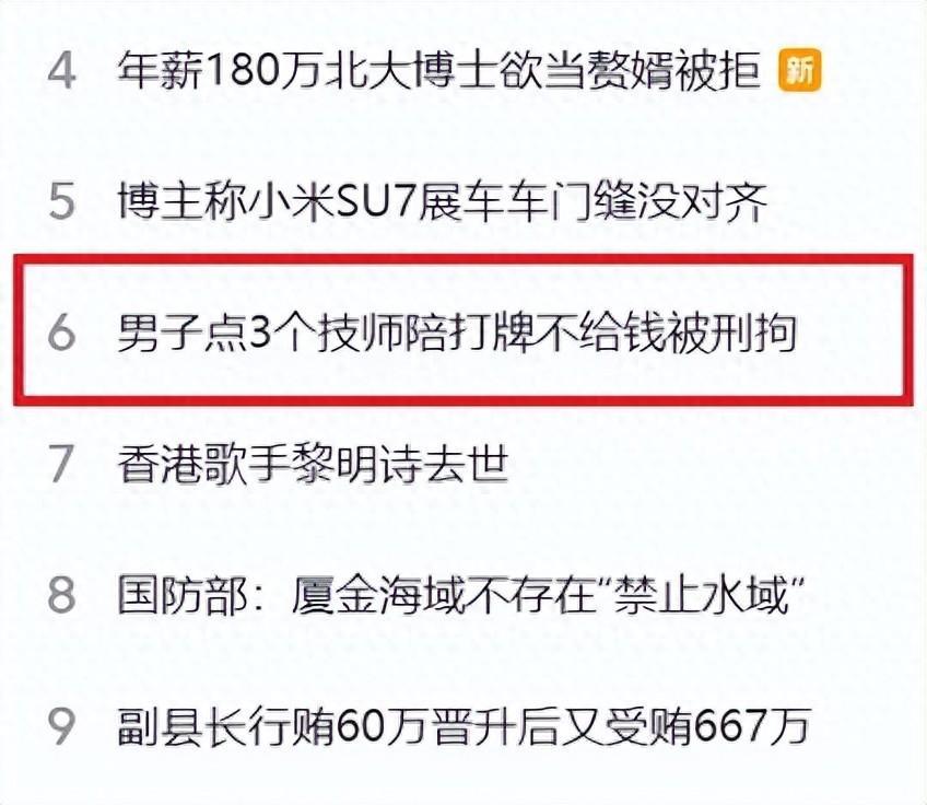 男子點3個技師陪打牌不給錢被刑拘,我服了!