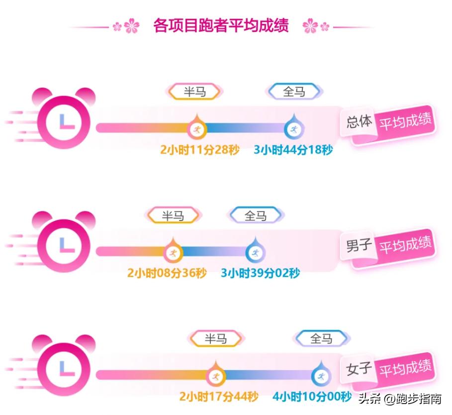 以2024無錫馬拉松大數據爲例,全程馬拉松項目總體平均成績爲3小時44分18秒。其中,男子和女子平均成績分別爲3小時39分02秒和4小時10分00秒。