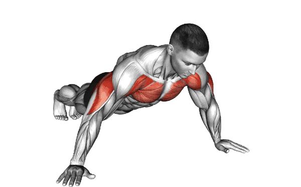 寬距俯臥撐的撐地的手間距離較遠,主要側重於鍛鍊胸大肌外側和肩三角肌,同時也能練到臂部的肱三頭肌。