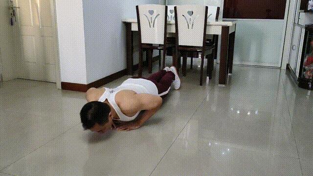 跪姿俯臥撐。以膝蓋跪在地上,雙腿彎曲做俯臥撐動作。