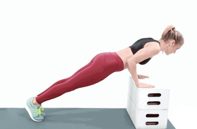 上斜俯臥撐。以兩手撐在較高的物體或桌上,做俯臥撐動作。