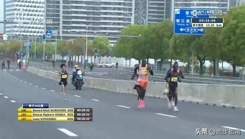 到了15公里計時點,第一集團用時不到43分鐘,平林清澄雖然落後四位外籍選手50米左右,但他依然堅定地追趕着。