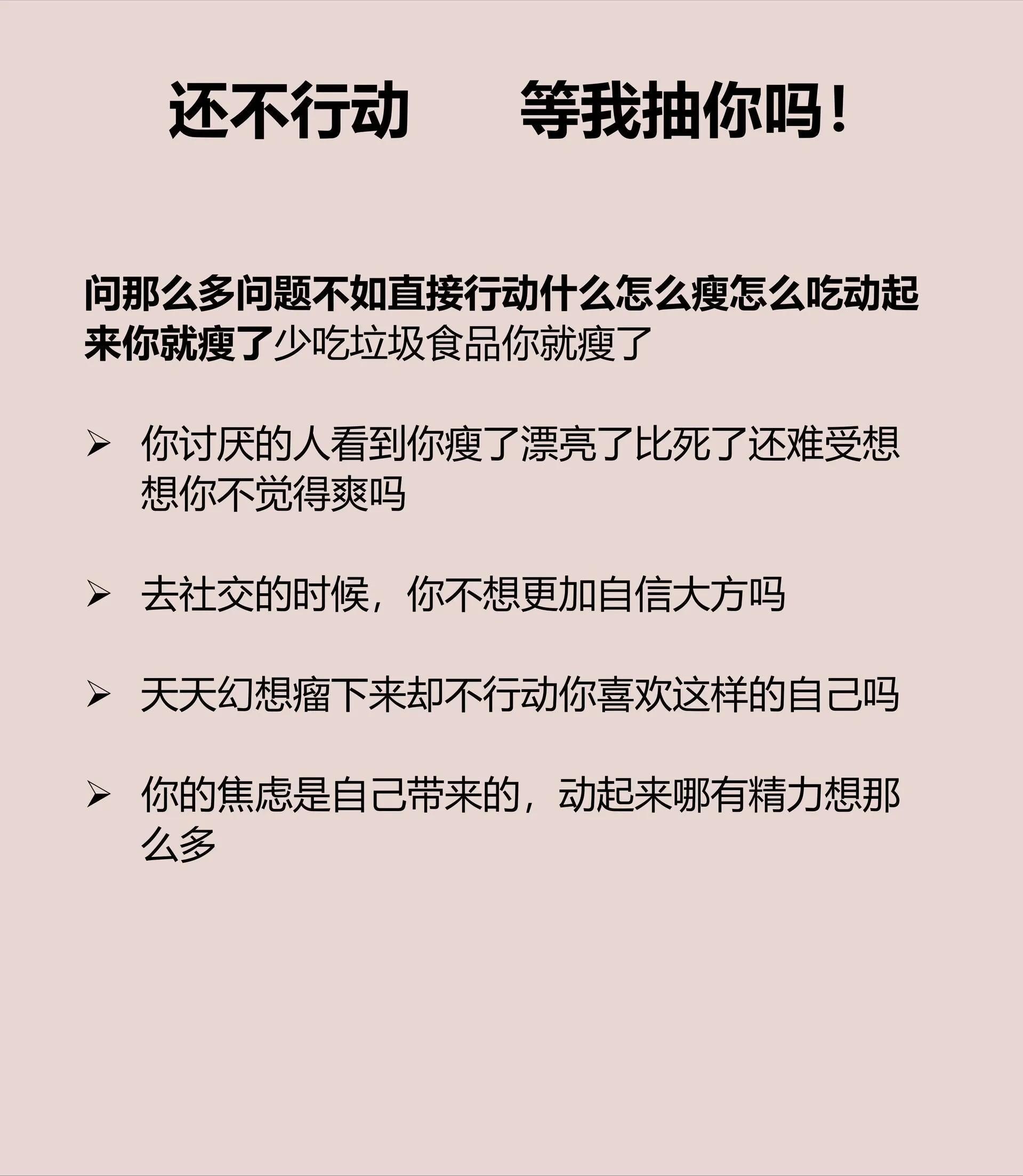 8、不要被家人、朋友影響了減肥進度,只有堅定信念,才能讓全世界爲你讓道,逆襲成爲更好的自己。