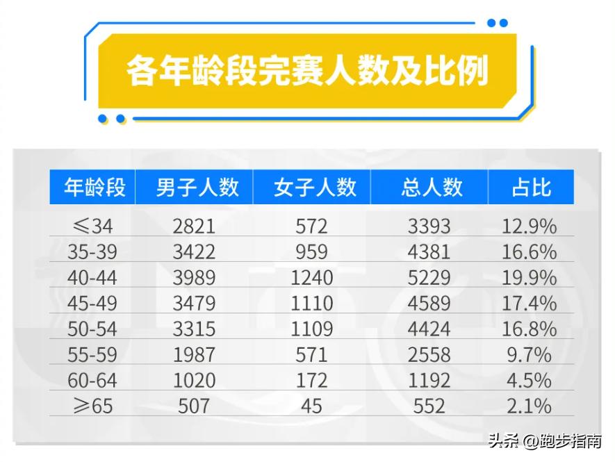 這一年齡段的跑者們不僅積極參與,而且在競技成績上也位列前茅,超過賽事的平均水平。