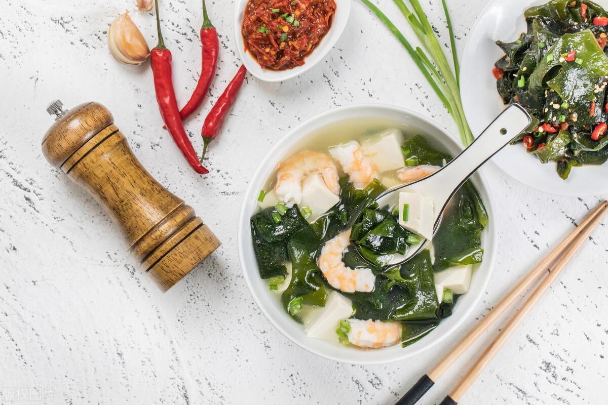 晚餐:一個蒸紅薯+一碗蝦仁豆腐海帶湯