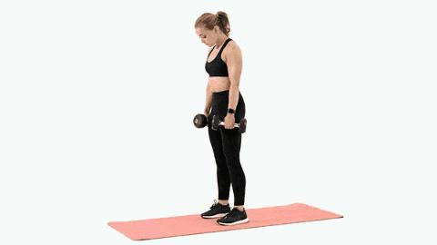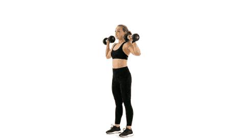 動作五:站姿啞鈴推舉 進行4組,每組15次