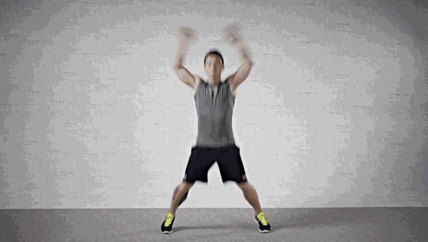 動作標準:站立時雙腳併攏,雙手自然下垂。當跳躍時,雙腳同時向外跳開,雙手則向上伸直,動作堅持至力竭,進行4-5組。