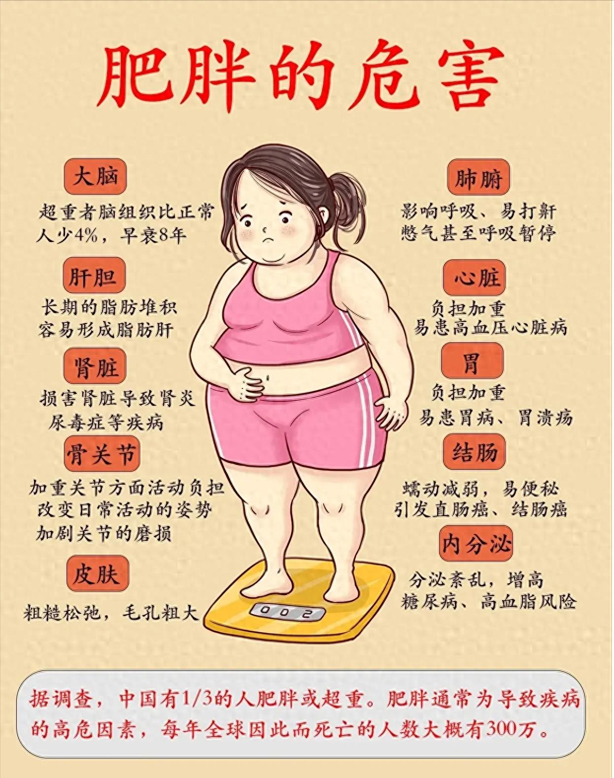 你可知道,中國超重及肥胖人羣已經達到了總人口的1/3,肥胖會誘發10多種健康疾病,威脅生命,而每年全球有300萬人因爲肥胖致死。
