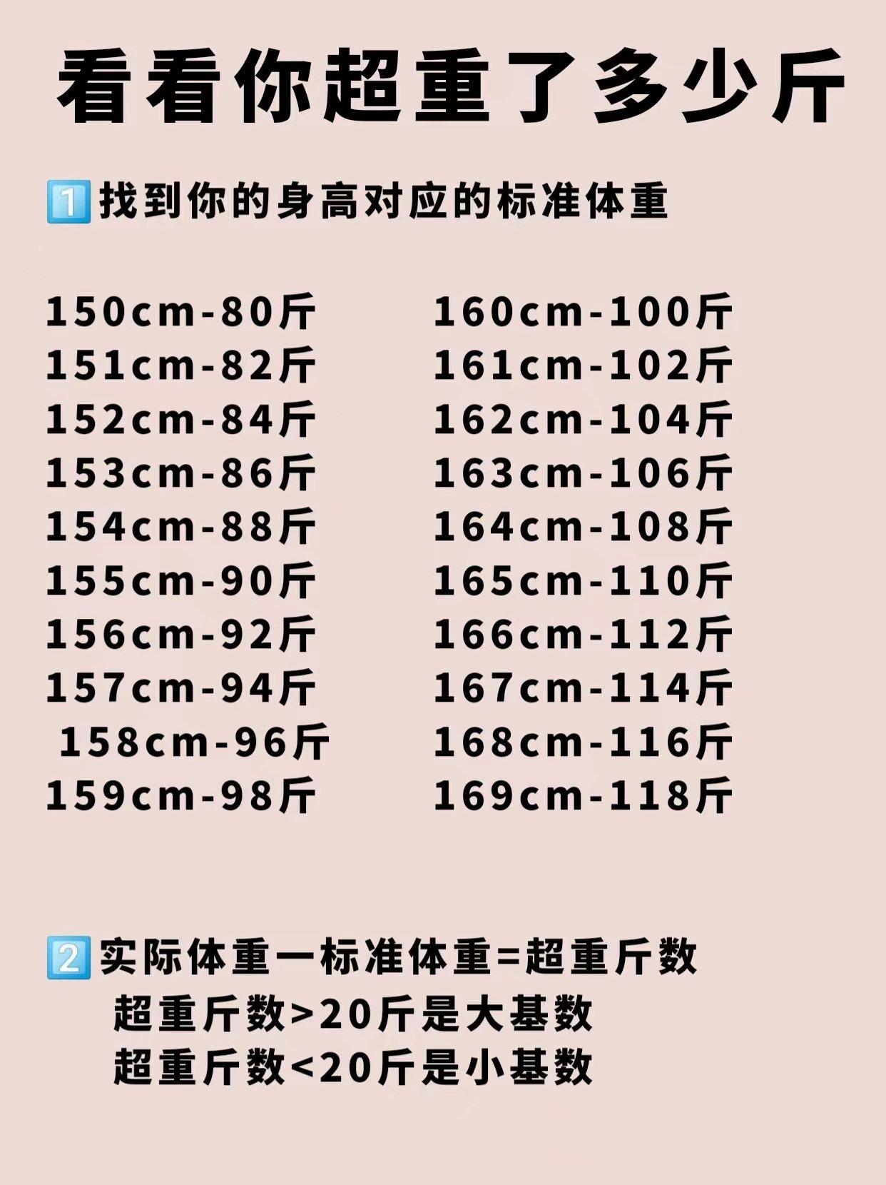 最後,分享一張標準體重對比圖,看看你的體重是否超標了?