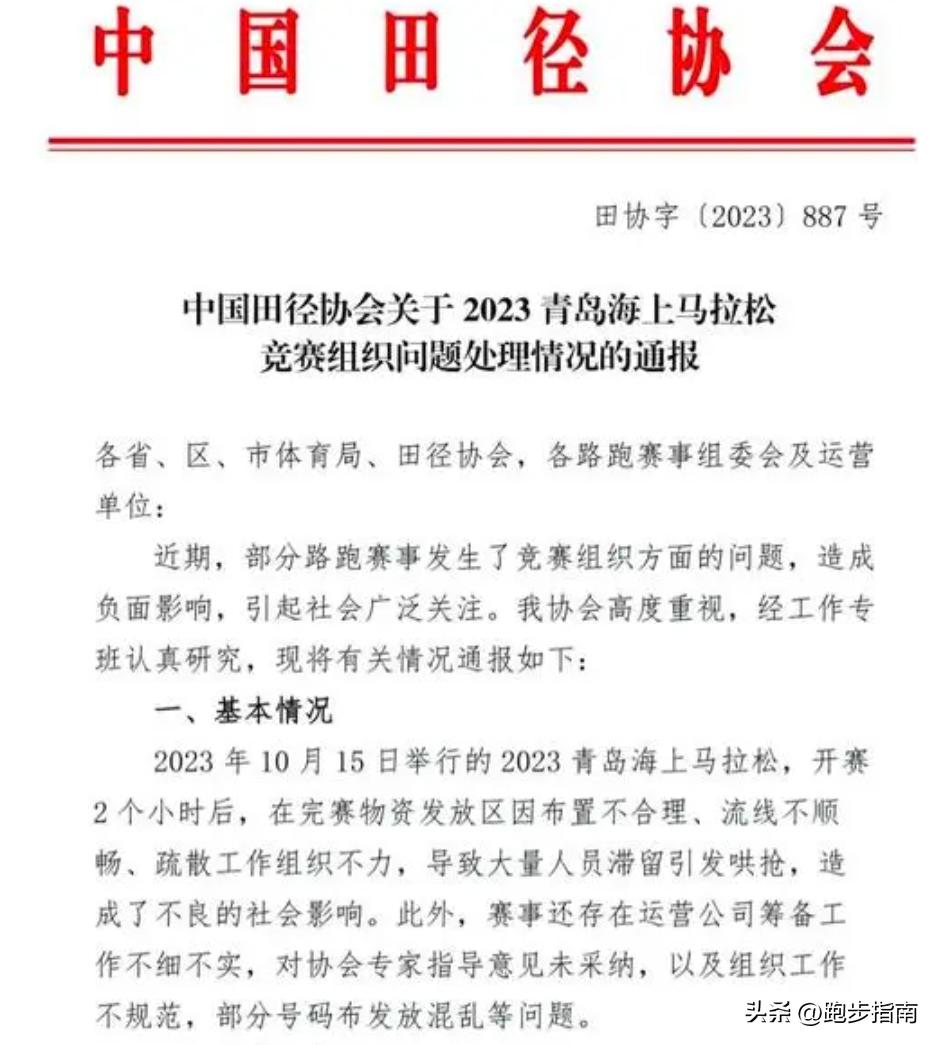 隨後,因青島海上馬拉松出現大量人員滯留引發哄搶等問題,田協決定取消組委會下一年度申請田協認證賽事資格。