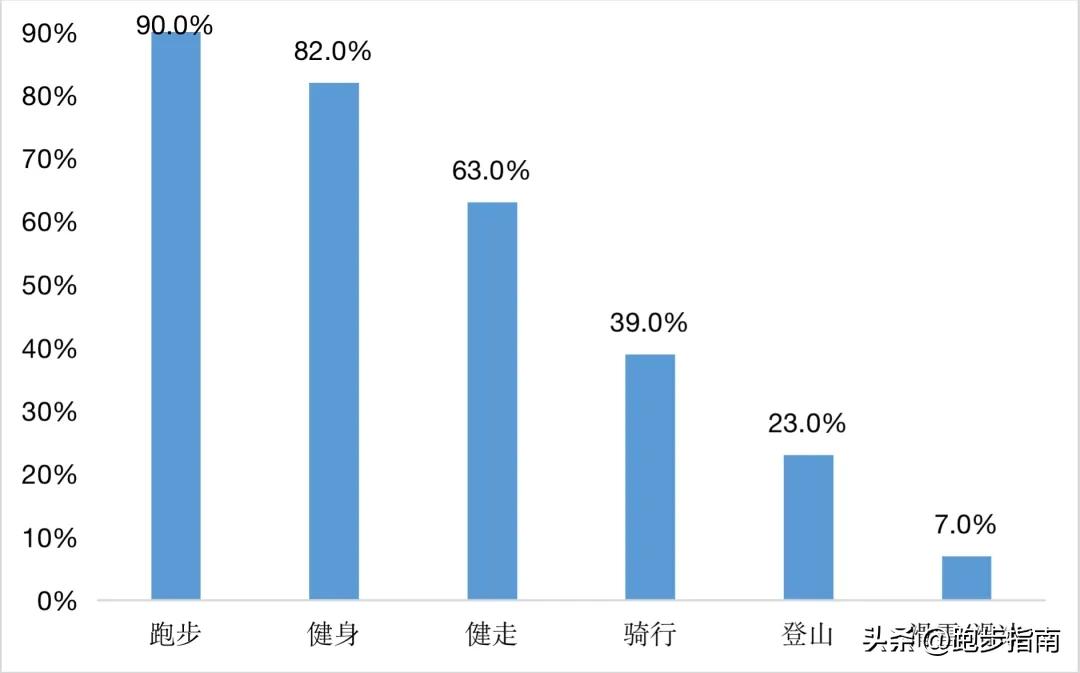 人民數據研究院的調研揭示,跑步在衆多運動類型中脫穎而出,成爲了參與率最高的選擇,佔比高達90%。
