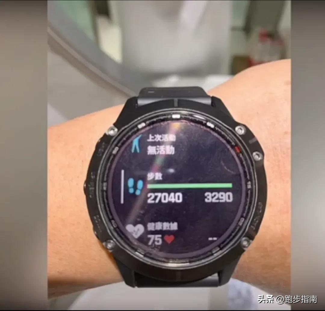 手錶的計步顯示27000步,按照他的步幅換算差不多是個半馬(21公里)的距離。