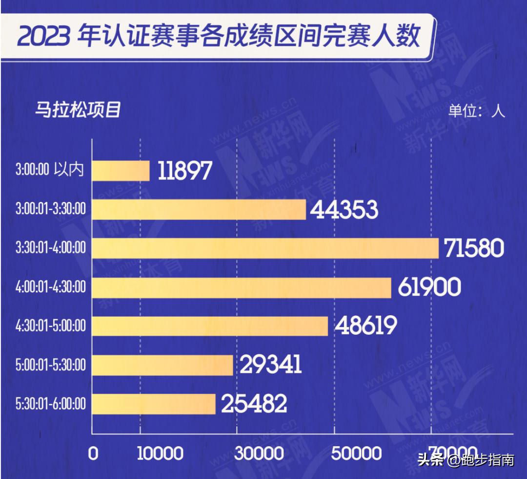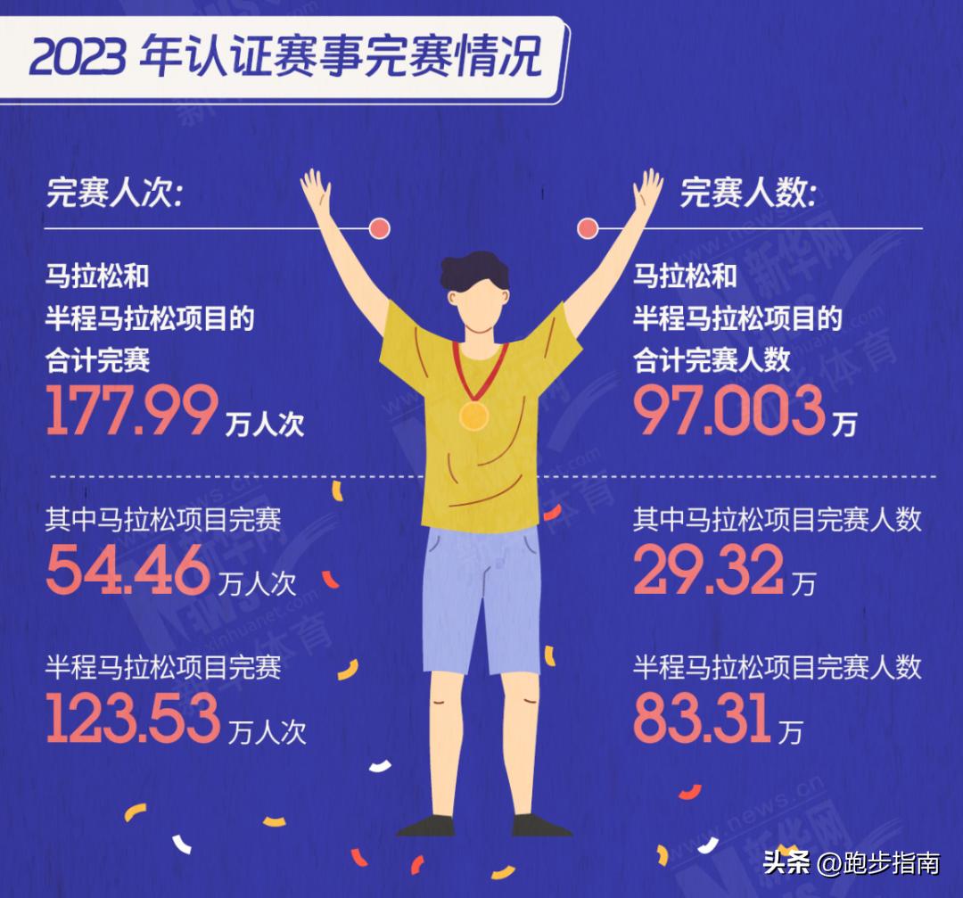 2023年馬拉松和半程馬拉松的參與熱情顯著升溫。馬拉松與半馬的完賽人數更是達到了97.003萬人,這一數字不僅反映了跑步運動的普及程度,也標誌着國民健康意識的持續提升。