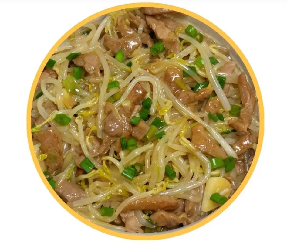 做法:少許油加熱後,將牛肉片大火炒八成熟後,加入豆芽翻炒幾下,加入少許調料,就可以出鍋了。