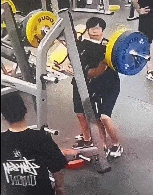 男子大重量槓鈴深蹲出事了,這哪裏是保護,簡直是害人啊