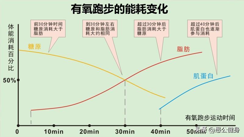 當我們剛開始跑步時,是先以體內的糖原和極少量的脂肪作爲主要能量來維持運動;當後續的跑步強度和持續時間達到一定程度,大概是30分鐘時,身體就會開始加速燃燒脂肪來供能,從而達到減肥的效果。