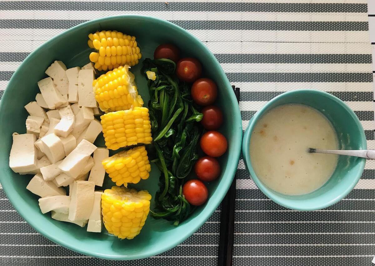 早餐:2顆雞蛋+一根水煮玉米(或一個蒸紅薯)