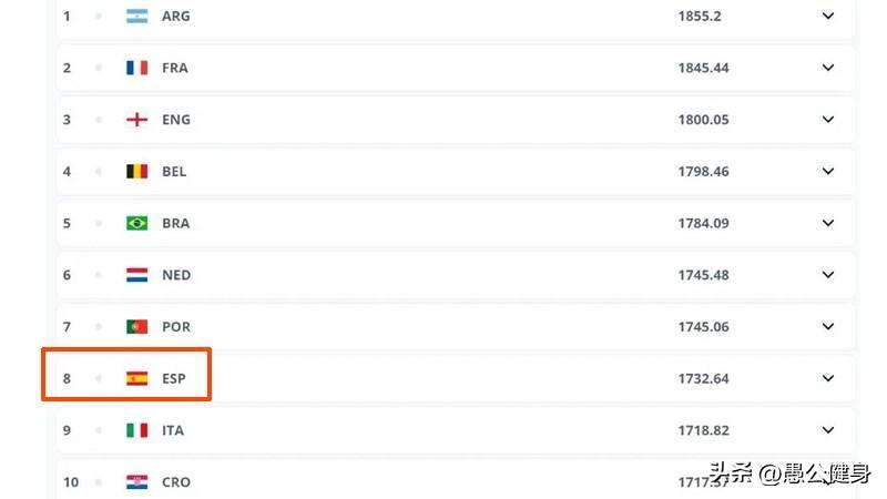西班牙作爲歐洲足球強國,目前在FIFA排名爲第8位。