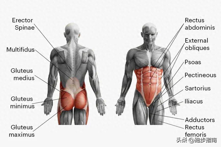 核心肌羣位於身體的中心部位,包括腹直肌、腹橫肌、髂腰肌和臀大肌等重要肌肉羣。這些肌肉羣在跑步過程中起到了至關重要的作用,不僅幫助維持和傳導力量,保證跑步時的穩定性,還能有效保護和支撐身體的各個部分。
