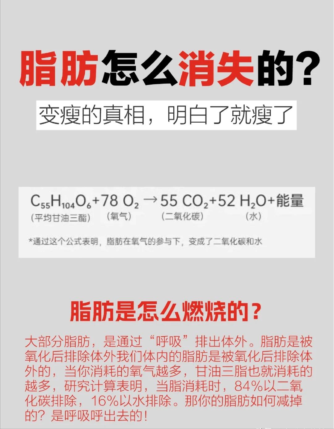 其實,脂肪大部分是通過呼吸作用分解掉的,而不是所謂的流汗。當你身體消耗的氧氣越多,體內甘油三酯也會分解的更多。