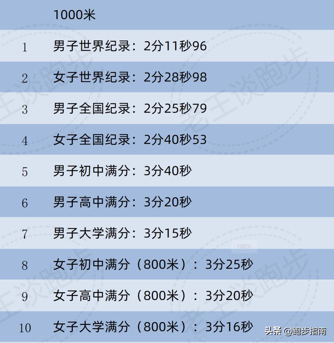 1000米跑並非運動員等級標準中的一項正式賽事,因此各級運動員並沒有針對此項目的具體成績標準。