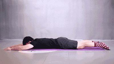 首先,從小燕飛動作開始。先俯身趴在墊子上,雙手和雙腳抬起,儘量向後伸展,並反覆升降,模仿飛翔的燕子。這樣能較好地練到深層的腰背多裂肌和豎脊肌羣,對改善腰椎極好。