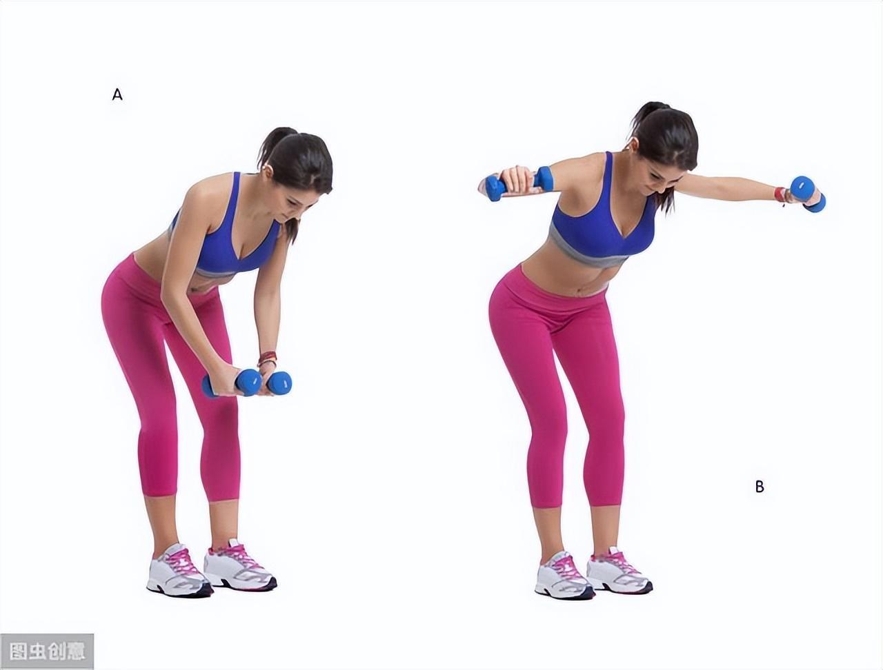 動作二:俯身啞鈴反向飛鳥(鍛鍊肩後束)