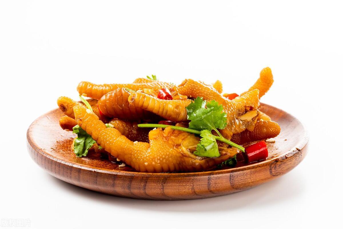8、雞爪,雖然雞爪富含膠原蛋白,但同時也是高脂肪、高熱量的食品。100g雞爪的熱量超過了250大卡,2只雞爪就相當於一碗米飯的熱量了,減肥的人一定要遠離。