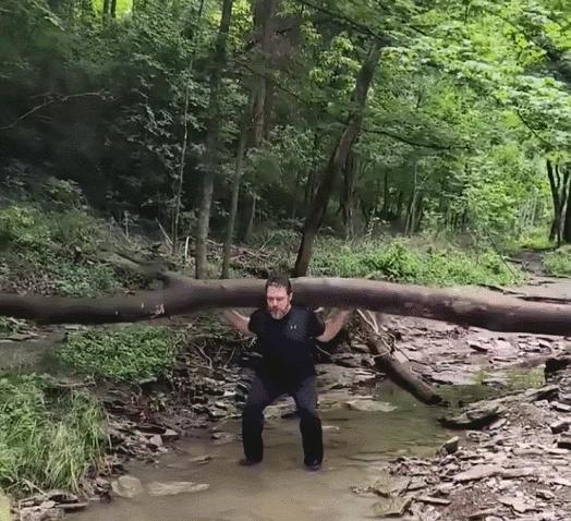 這根大木頭做深蹲你可以嗎?歡迎評論留言。