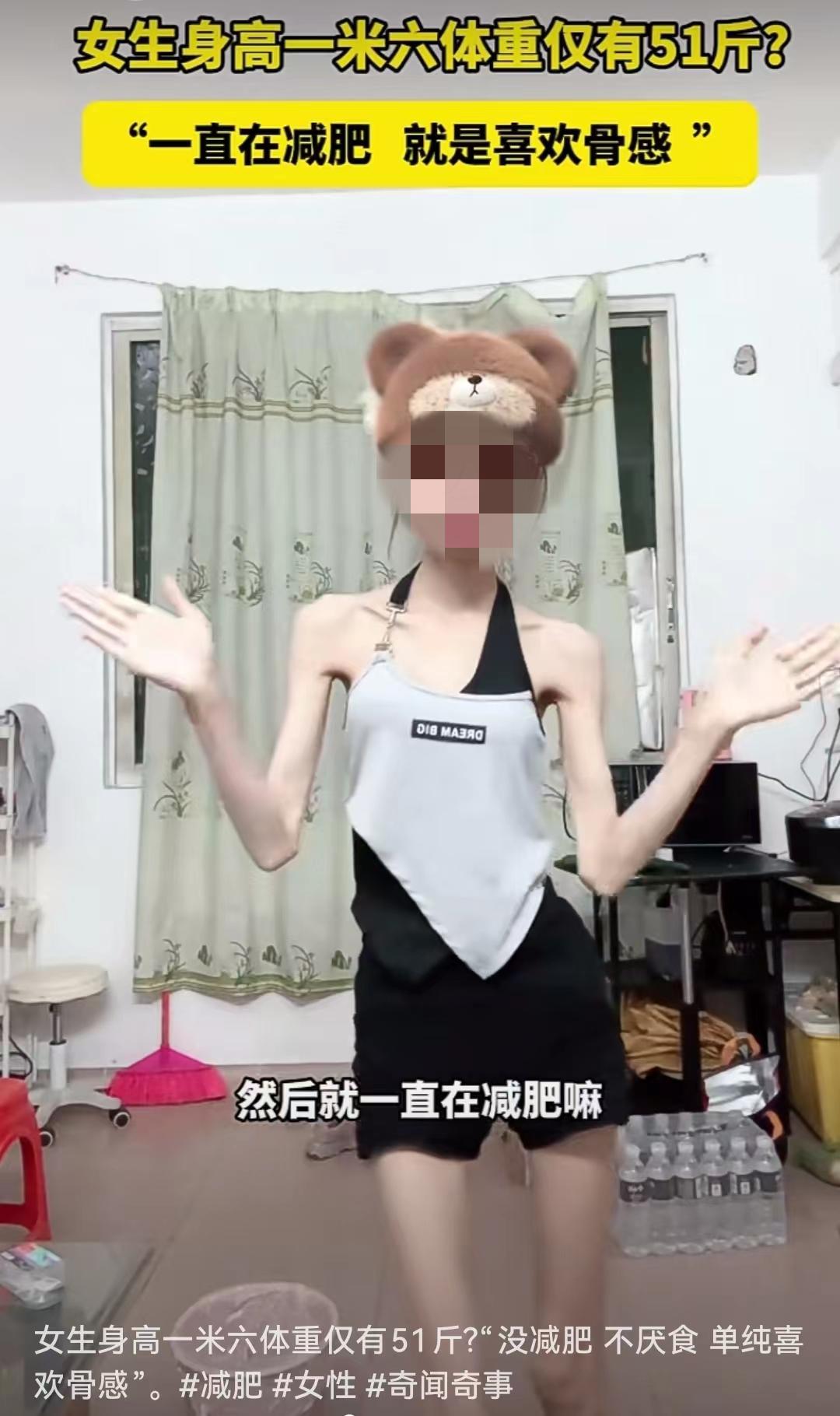 女生1米6,體重50斤左右,因爲自己比較喜歡骨感,然後就一直減肥。