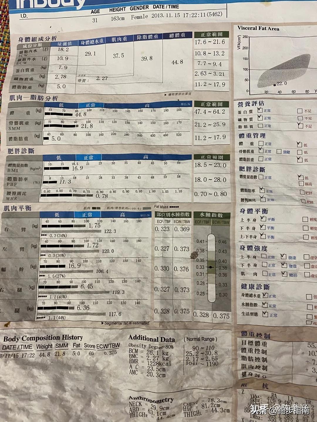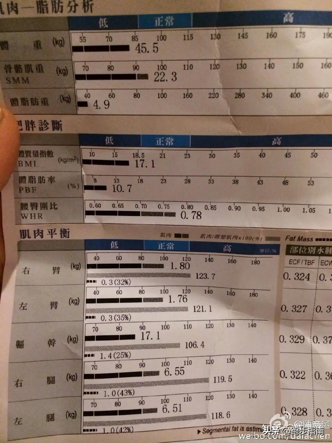 關於我體脂11%這件事,其實我也不知道要來解釋什麼,2014年1月的時候我po出了一張我剛測出來InBoby的數據,上面的體重是45.5,體脂10.7。
