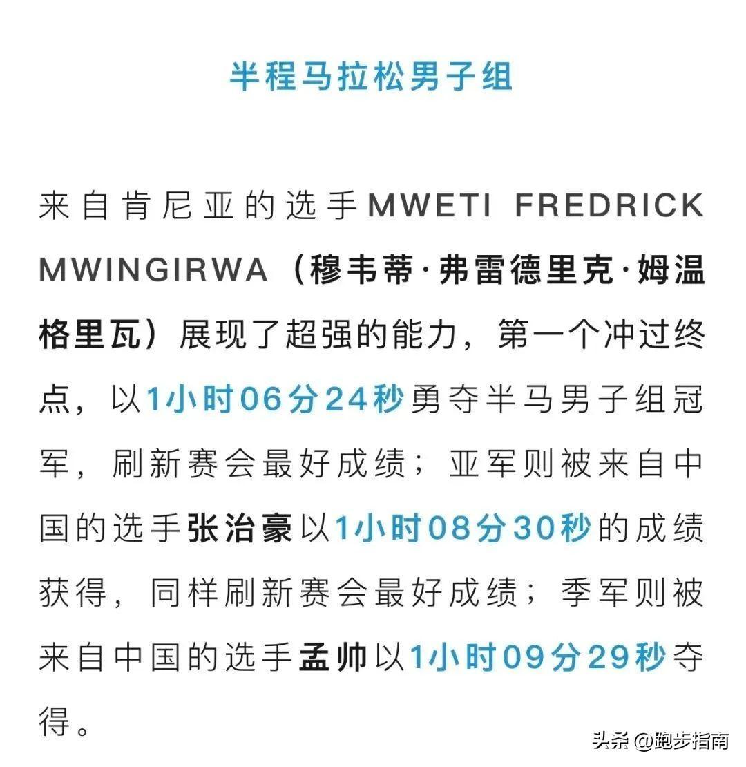 來自肯尼亞的選手Mburu Peter Mwangi以1小時5分41秒的優異成績衝過終點線,原本應當成爲男子組的冠軍。
