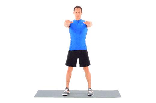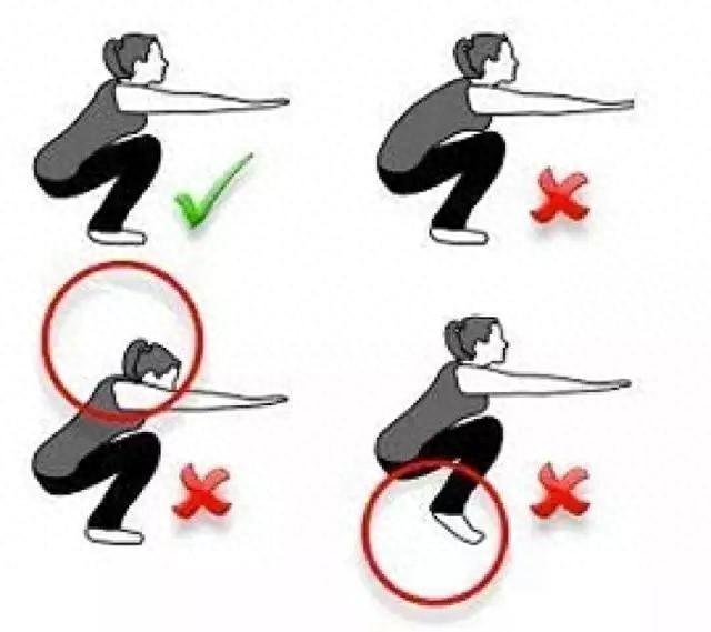 2、下蹲的時候,膝蓋與腳尖方向一致,避免內扣,膝蓋不要超過腳尖,重量落在腳後跟。