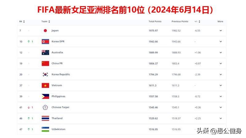 在亞洲,儘管中國女足在在亞洲球隊中仍然保持了一定的競爭力,但在全球範圍內,中國女足的排名相對較低。在世界排名的亞洲球隊中,日本女足上升至第七位,成爲亞洲排名第一的球隊,而朝鮮女足位列第十、亞洲第二。