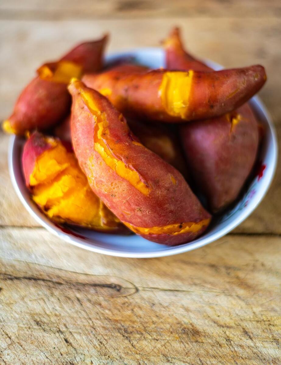 3、地瓜甜味豐富,可以代替各種加工甜食,比如蛋糕、蛋撻等,既能控制卡路里攝入,還能補充粗纖維、維生素和礦物質,不但有助於眼睛健康,還可以讓皮膚變得有光澤,氣色變好。