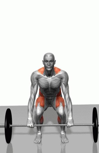 起始時,雙腳分開,略窄於肩部,保持背部挺直,膝蓋微微彎曲。緩慢蹲下,雙手握住槓鈴,槓鈴貼近小腿。
