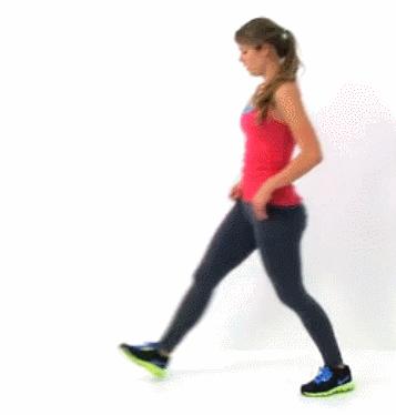 動作標準:先邁出一步,前腿屈膝呈 90 度,後腿膝蓋接近地面但不觸碰。身體保持正直,重心均勻分佈在兩腿之間。在動作過程中,感受前側腿的臀部肌肉強烈收縮,然後換腿重複。