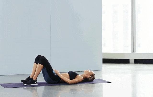 平躺在墊子上,雙腿屈膝,以肩和雙腳爲支撐點,將臀部向上抬起,直至大腿與身體呈一條直線,保持數秒後再緩慢放下。