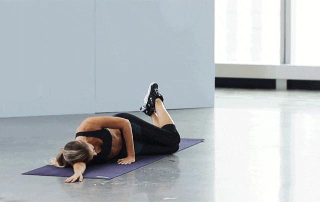 側身躺在墊子上,雙腿彎曲,上方的腿在抬起時要感受臀部外側的發力,動作要緩慢且有控制。
