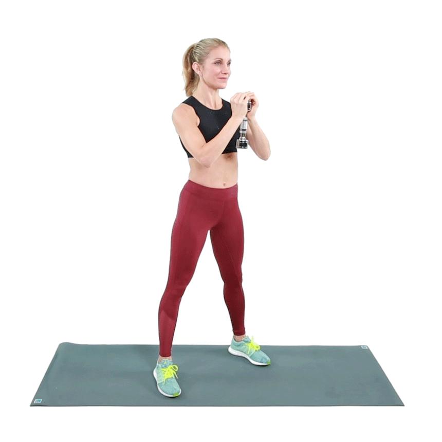 在進行這個動作時,雙腳需分開與肩同寬,膝蓋與腳尖方向保持一致,緩慢下蹲至大腿與地面平行,注意保持背部挺直。