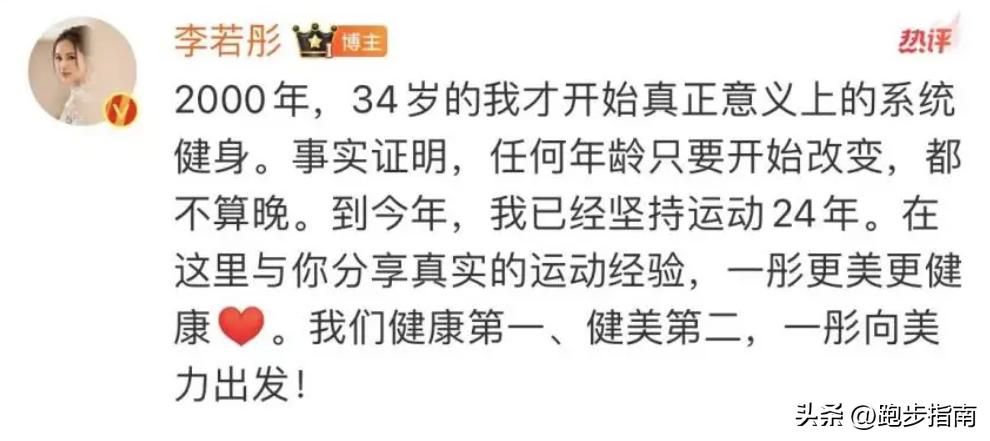 李若彤在評論區中表示:“2000年,34歲的我纔開始真正意義上的系統健身。事實證明,任何年齡只要開始改變,都不算晚。到今年,我已經堅持運動24年。”