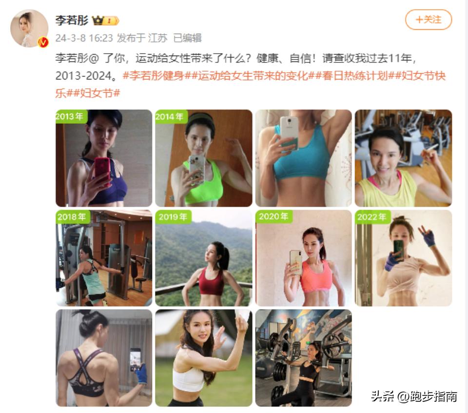 李若彤曾在社交媒體大方分享了自2013年至2024年間,她堅持運動的照片,11年光陰流轉,她非但未顯歲月痕跡,反而在活力與青春中愈發綻放光彩。