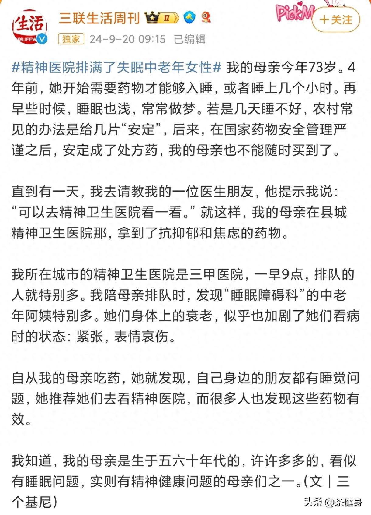 有新聞說,精神醫院排滿了失眠中老年女性。
