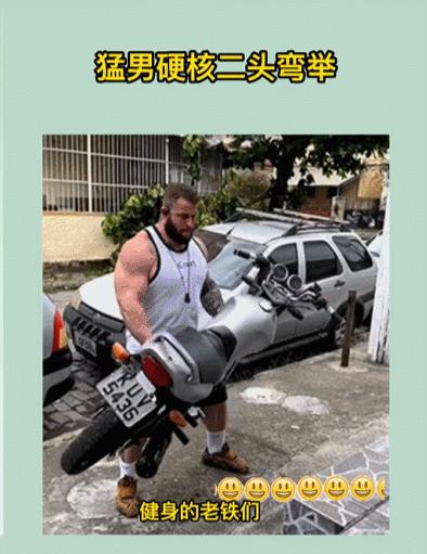 健身的老鐵們,你們感受下猛男的硬核二頭彎。只見他用摩托車做負重。雖然腿部、腰部借力很多,但是能彎舉這個重量,也是很牛叉。在這裏要問老鐵們,這個重量你可以嗎?