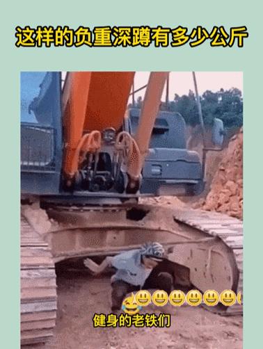 健身的老鐵們,你們看看這個負重深蹲是真的還是假的。只見小哥站在剷車履帶鐵桿中間,下蹲後將剷車都抬起來了。你們說這樣的負重深蹲有多少公斤?算什麼水平?