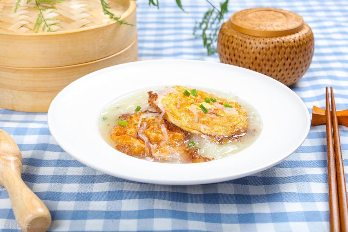 白蘿蔔,有着消食下氣、潤肺解毒的作用。煎蛋,爲湯增添了濃郁的香味和豐富的蛋白質。